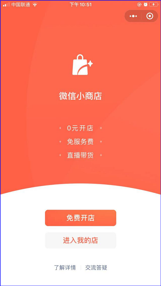 按照官方的說法,微信小商店是小程序團隊全新打造的一個快速建店工具,無需開發(fā)即可一鍵開通一個賣貨小程序,可免服務費,店主還能直播帶貨。