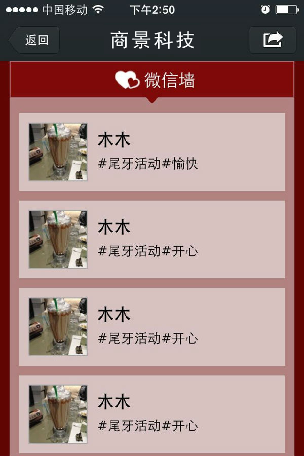 現(xiàn)場用戶發(fā)送文字、表情、圖片消息就可上墻展示,迅速提升現(xiàn)場熱度,讓大家互動起來。