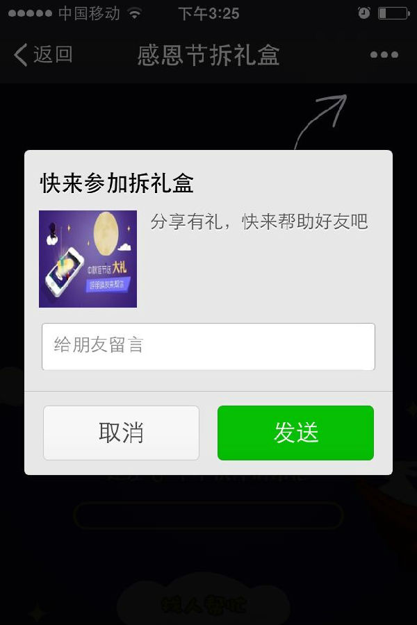 使用技巧:創(chuàng)建好禮盒引導用戶分享到朋友圈可以有很好的傳播效應(yīng)。