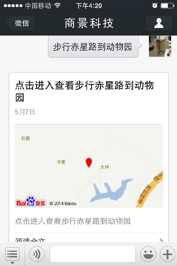 開啟此功能,首先要發(fā)送地理位置信息,然后輸入: 步行廈大醫(yī)院到廈大西村 或 廈大醫(yī)院到廈大西村怎么走